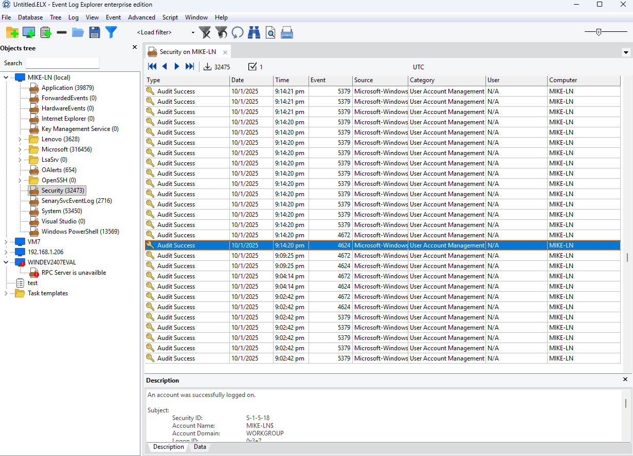 - Event Log Explorer (all editions)